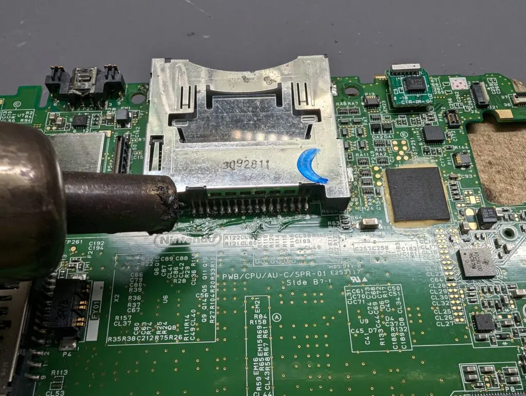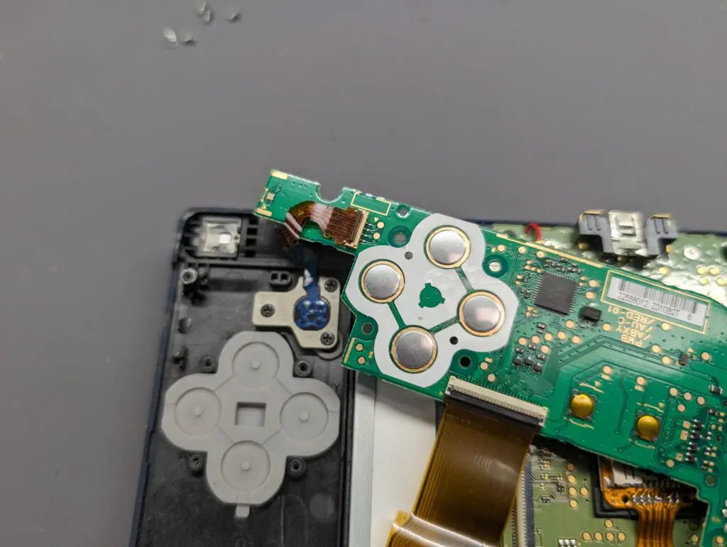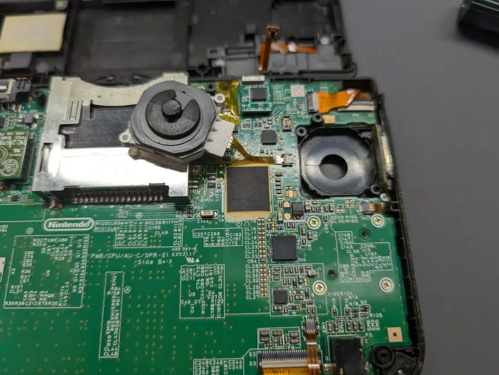 スライドパッドユニットやスティックの交換を行い、あわせて基板側の接点を点検・修正します。
