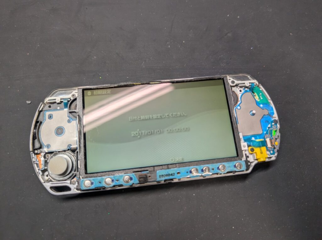 PSP-3000のUMDドライブ交換後の動作点検時の写真