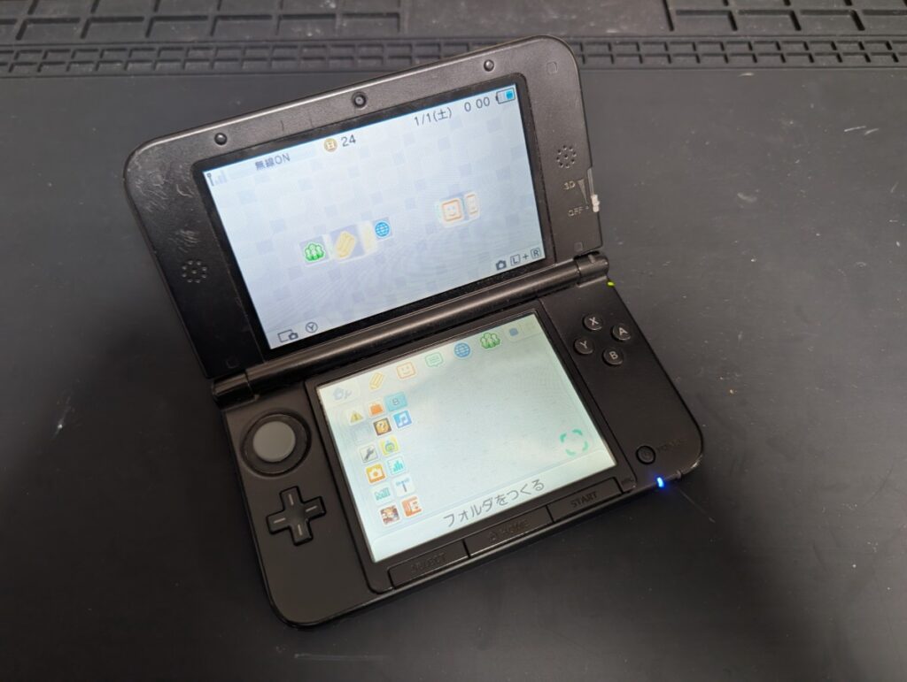 正常に起動するものの、スライドパッドが誤作動を起こし、ホーム画面上でカーソルが常時動いてしまう症状のある3DS LLの修理をご依頼いただきました。 お預かり時の状態 起動させると、常に右方向へ入力されている状態で、ホーム画面上のカーソルが動き続...