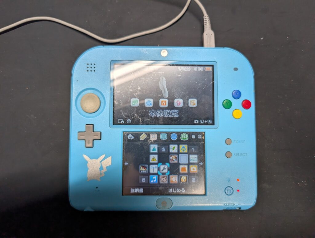 充電ケーブルを本体に差し込んでも、充電状態を示すオレンジ色のランプが点灯せず、何時間充電を行っても起動できない状態の2DSをお預かりしました。 初期点検時の様子 充電ができない故障の場合、お客様側の環境や充電ケーブルに原因がある可能性もあるた...
